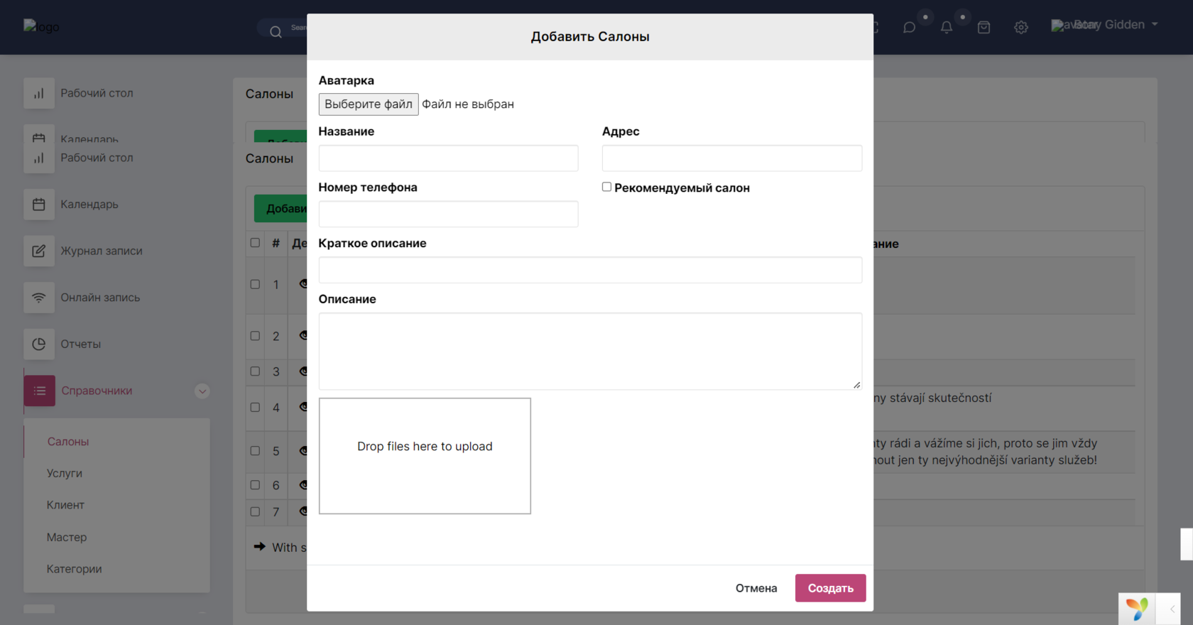 Укажите Название салона оно будет использоваться на внешних ресурсах, укажите его без кавычек и форм собственности.