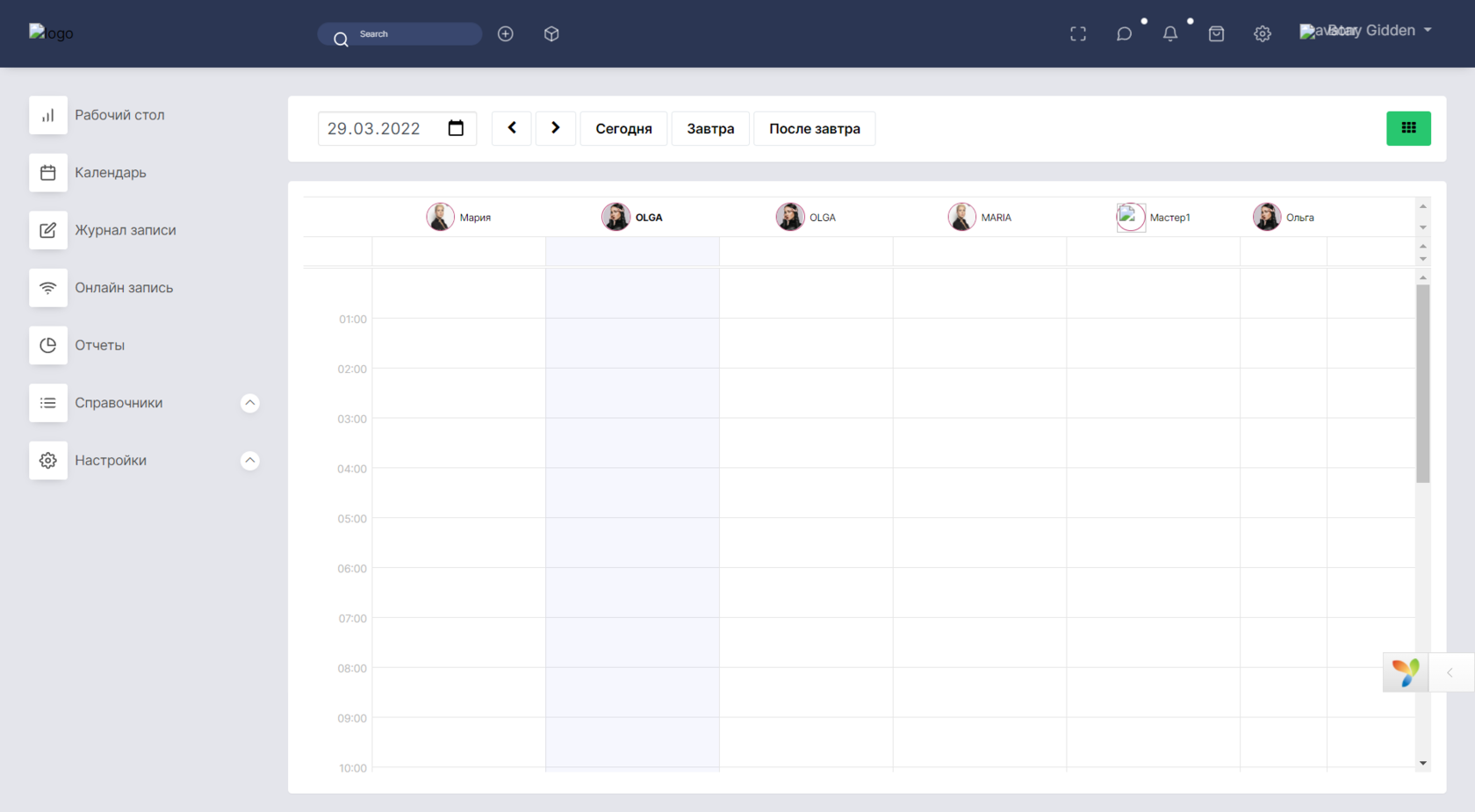 Jakmile byl zaměstnancům společnosti vyplněn harmonogram, jejich služby, informace o nich se objeví v zápisníku. Díky tomu se objeví možnost zapisovat klienty na služby k těmto zaměstnancům.